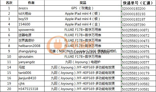 結果公布啦~恭喜所有獲獎網友!,請獲獎網友qq聯系 電源網-fqd (QQ:1428930588)確認獲獎信息