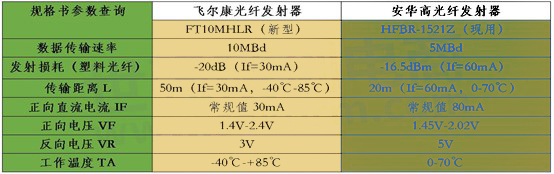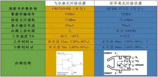 c.飛爾康10M速率的在成本上相比安華高5M的有明顯優勢。光纖接收器的替換主要保證參數接近即可。