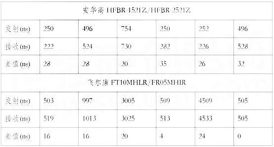 小結:光纖發射信號脈寬與光纖接收信號脈寬的差值數據可看出:安華高的脈寬差值范圍20ns-35ns之間,飛爾康的脈寬差值范圍0-24ns之間。脈寬差值越小,說明信號在傳輸過程中的損耗較低,更能在接收端完好還原輸入信號的波形狀態。從這方面看,安華高發射與接收信號脈寬差值偏大點。