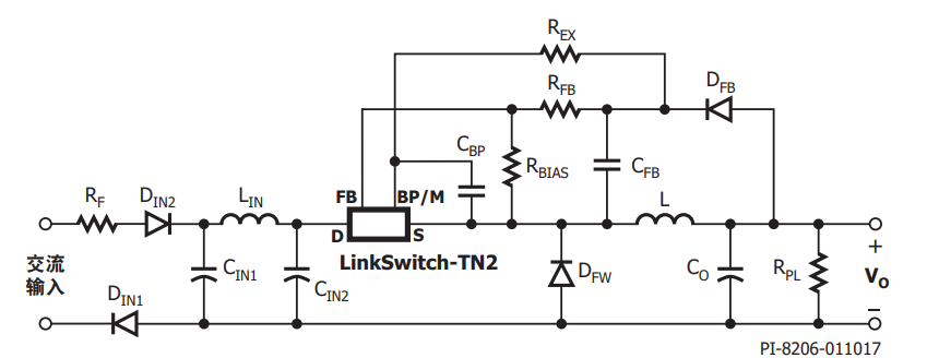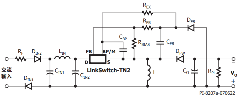 LinkSwitch-TN2常用于非隔離電源的很多拓撲應用,可提供一個以相線或中線為參考的輸出電壓或者一個反相/非反相輸出電壓 – 適合采用可控硅進行交流負載控制的應用。用到的場景有小家電、夜燈、緊急出口指示燈和LED驅動器。