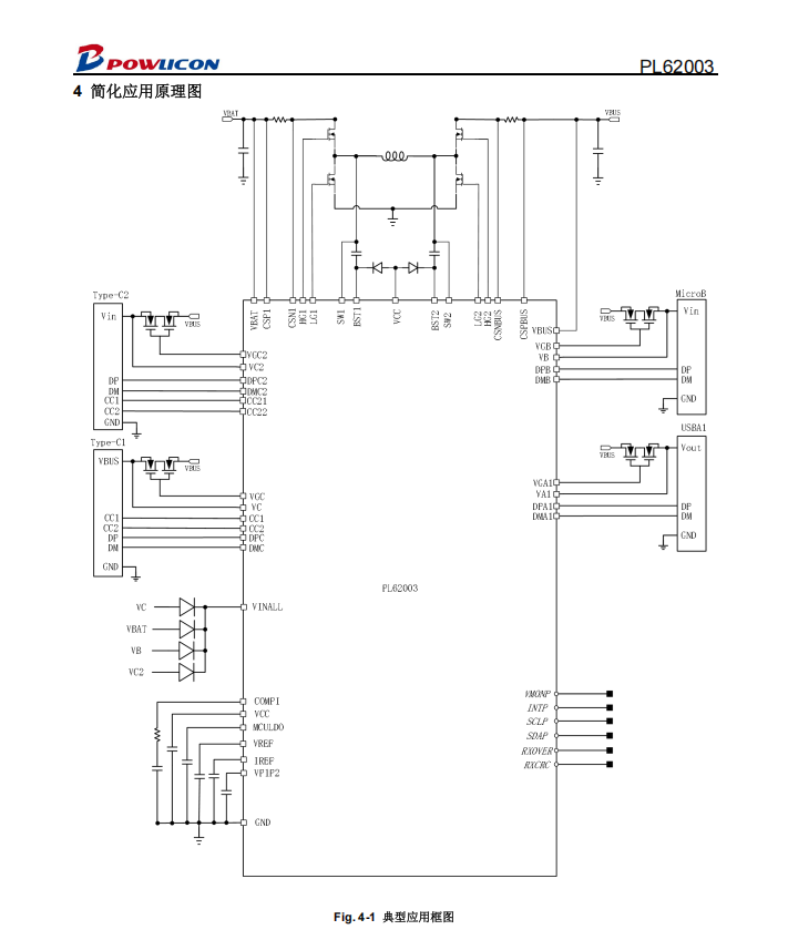 PL62003 是一款高效的同步雙向升降壓充電器,集成了快速充電協議。它是一個功能全面且靈活的升降壓充電器平臺,專為大多數帶有 Type-C 端口并支持 PD 協議的快速充電應用而設計。它可以被編程設置為降壓充電、升壓充電或升降壓充電模式。 PL62003 提供 I²C 接口以便與MCU通信,為電池和總線端子提供高壓檢測功能,能精確地對電池電流、總線電流以及多達 4 個 USB 端口的電流進行電流檢測。它還為所有 USB 端口的 CC1、CC2、DP、DM 通信信號提供高壓隔離。PL62003 可以與通用的MCU協同工作,為各種快速充電應用,如移動電源、電池組或便攜式儲能電源等,提供一個完整、強大且靈活的升降壓充電系統。