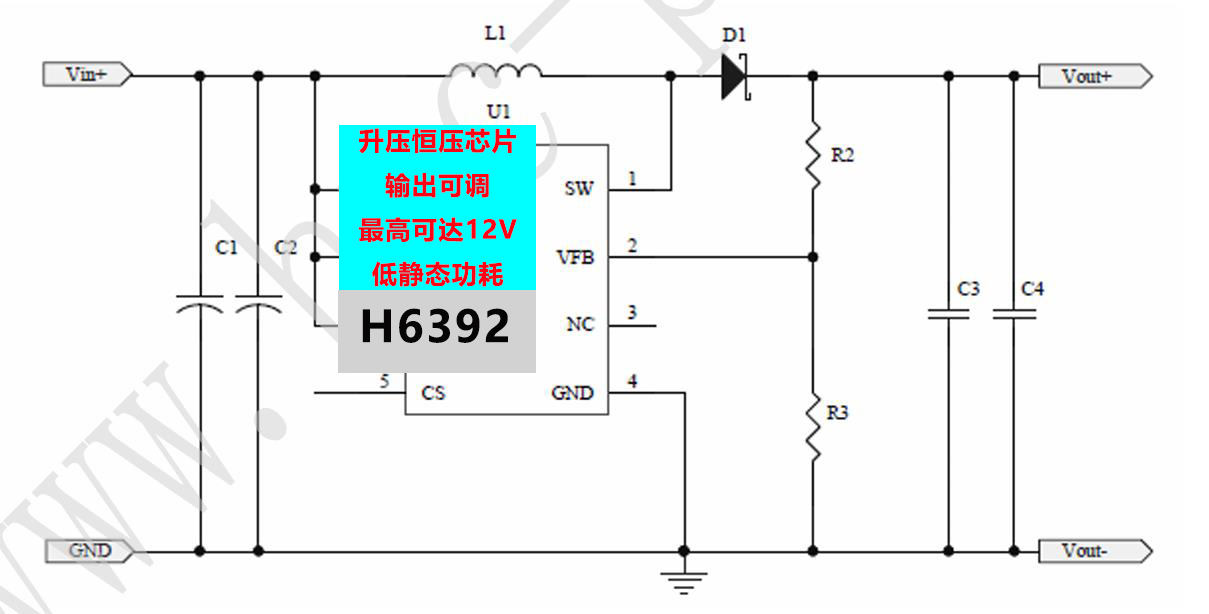 2. H6392?類型:同步升壓(內置 MOSFET)?輸入電壓:2.4 - 4.5V?輸出能力:5V/3A(15W),轉換效率 93%?關鍵優勢:① EN腳拉低電平,輸出完全關斷功能,顯著降低待機功耗。② 輸入限流可調
