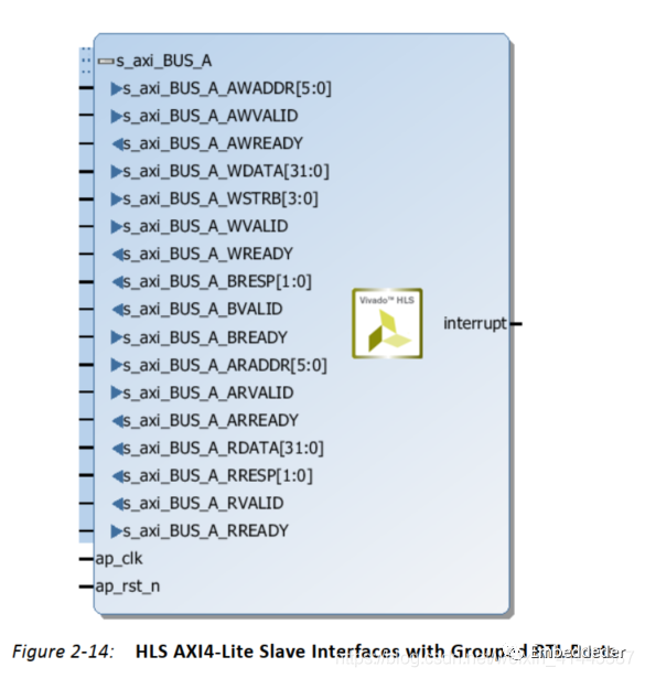 當你用前面的例子合成一個設計時,它會產生如下圖所示的接口(AXI接口):