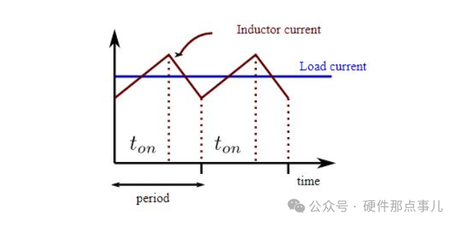 這種周期性開關行為使電感電流呈現鋸齒狀波形,包含穩定的直流分量和上下波動的交流紋波。