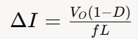 上面的公式表明,電感紋波電流大小與輸出電壓Vo、占空比D、開關頻率f和電感值L相關,而與平均電流Io無關。