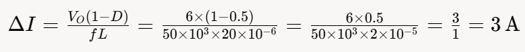 交流紋波△I是電感電流在開關周期內的峰峰值,反映電流的最大變化量。其計算基于如下的公式: