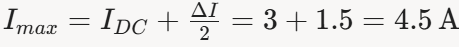 因此,電感電流在1.5A至4.5A之間波動,平均值為3A。