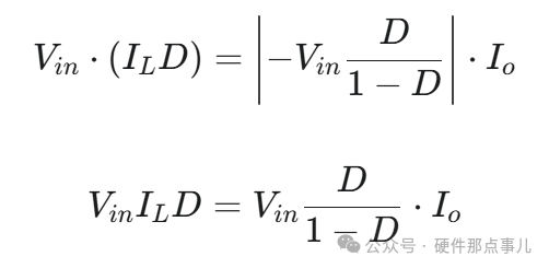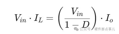電感平均電流推導 :這是推導核心公式的關鍵一步。假設效率為100%,則輸入功率等于輸出功率。