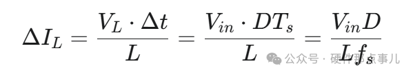 電感紋波與峰值電流推導,紋波由開關管導通期間產生: