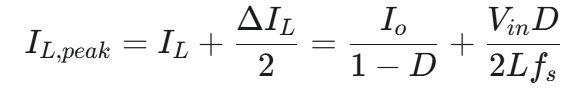 峰值電流IL,peak是選擇電感和開關管時最重要的參數之一,必須確保電感的飽和電流大于此值。