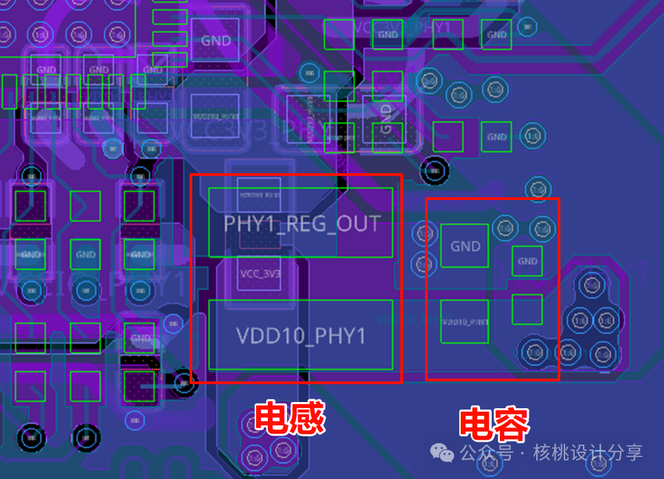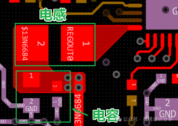 如果核壓是由芯片內部的DC-DC提供,那外部加的電感和電容必須靠近REGOUT管腳放置,走線順序:電感→電容→核壓對應管腳。