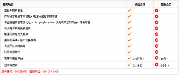 成為電源網誠信供應商,您可以享受到如下增值服務: