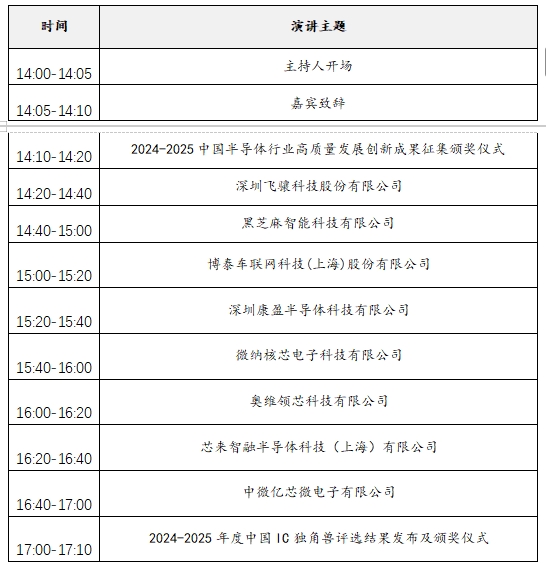 活動同期還將進行“2025年度中國IC獨角獸和中國半導體行業高質量發展創新成果征集”的評選頒獎典禮,屆時會對獲評的企業代表頒發證書,并公布獲獎名單。