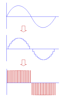 SPWM調制的實現方式:模擬實現方式:在模擬電路里,我們常常用調制基波(正弦波)和載波(三角波或鋸齒波)的幅值來做比較,幅值高時就輸出高電平或低電平產生SPWM調制波。單極性調制:其基本原理如下圖所示: