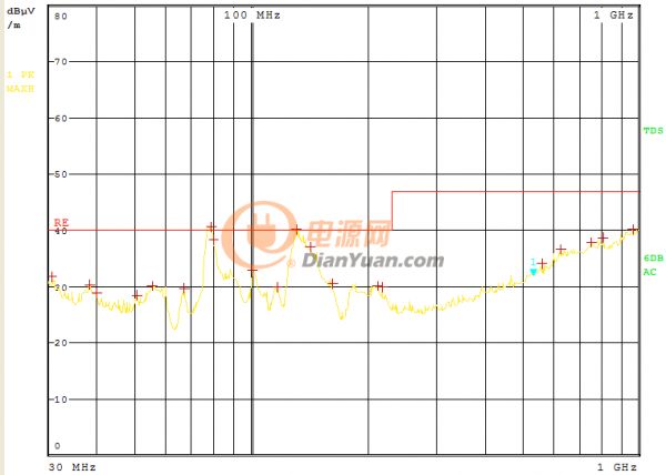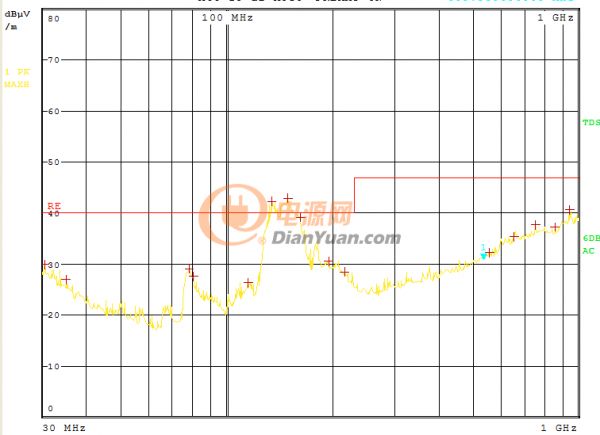 輻射波形如下,能加的都加了,比如Y電容,mos引腳加磁珠,mos加吸收電容,比較長的飛線上加磁珠,輸入輸出加磁環,變壓器屏蔽接地,還有啥辦法沒,跪求大神幫忙,謝謝