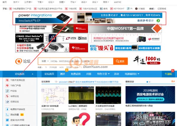 1、電源網論壇首頁點擊下圖中紅框中的PI廣告圖