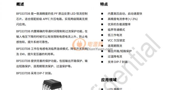 1 方案名稱:BP3337DB隔離反激原邊恒流 適用于兩級隔離無頻閃