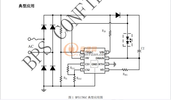 BP5178GC 是一款高度集成的、支持低壓可控硅調光 的高精度單段線性 LED 恒流驅動芯片。主要用于市 電輸入的高功率因數的各類光源和燈具的驅動, 同時具有良好的可控硅調光器兼容性。基于線性恒 流技術的 BP5178GC,可以省去電解電容和磁性元件, 有助于 LED 驅動器實現小體積、長壽命,并符合 EMI 標準。 BP5178GC 可以通過外部電阻精確地設定 LED 電流, 芯片通過優化不同輸入電壓下的輸入電流,可以減 小芯片的損耗,優化系統效率。 BP5178GC 通過設定泄放電流,可以實現良好的可控 硅調光器兼容性。 BP5178GC 具有過溫調節功能。當芯片溫度過高時, 將降低輸出電流。