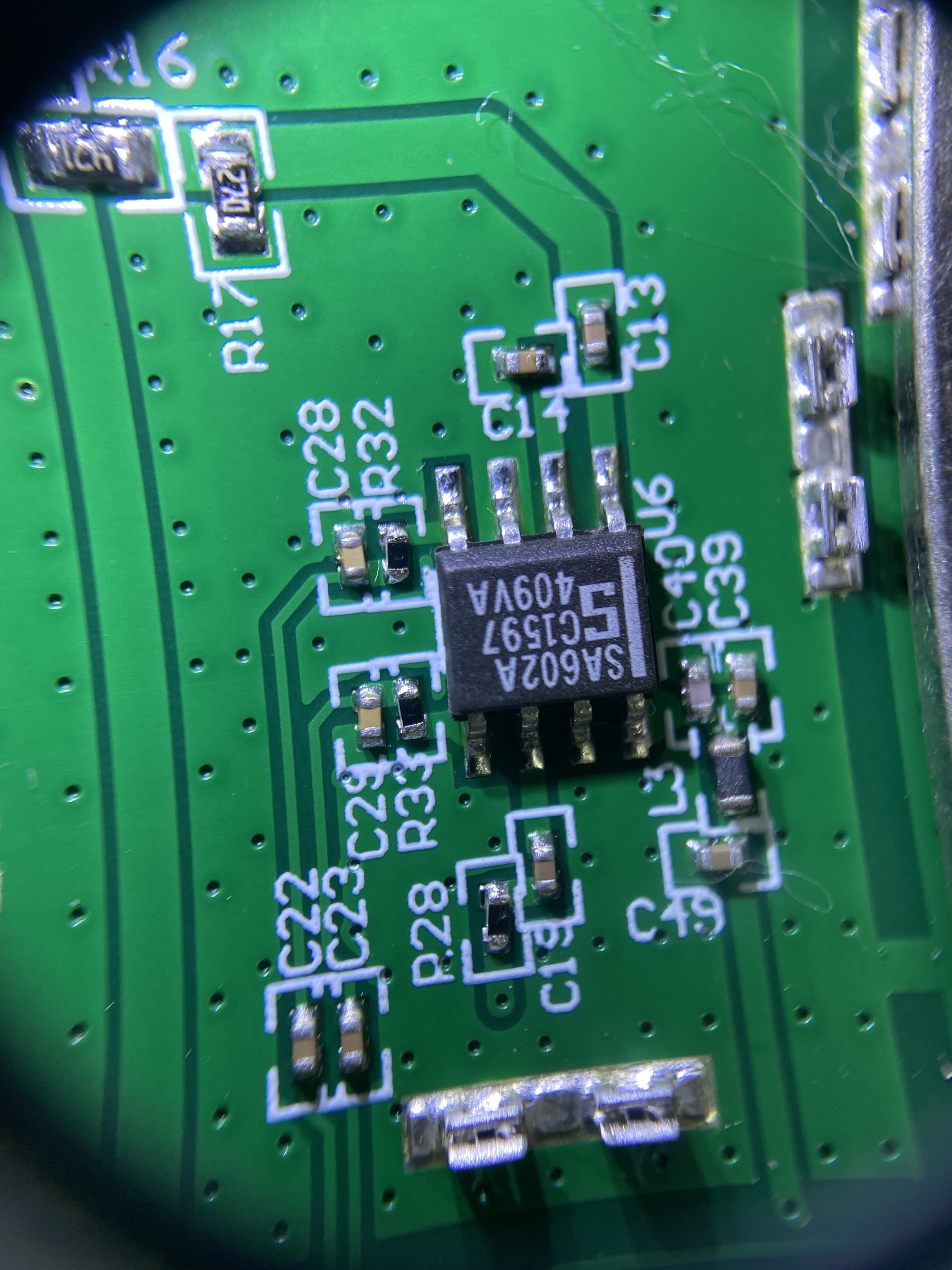 下面再繼續拆解接收部分的屏蔽蓋,我們打開屏蔽蓋發現只有一顆芯片,接下來放大,來分析一下這款芯片的功能,