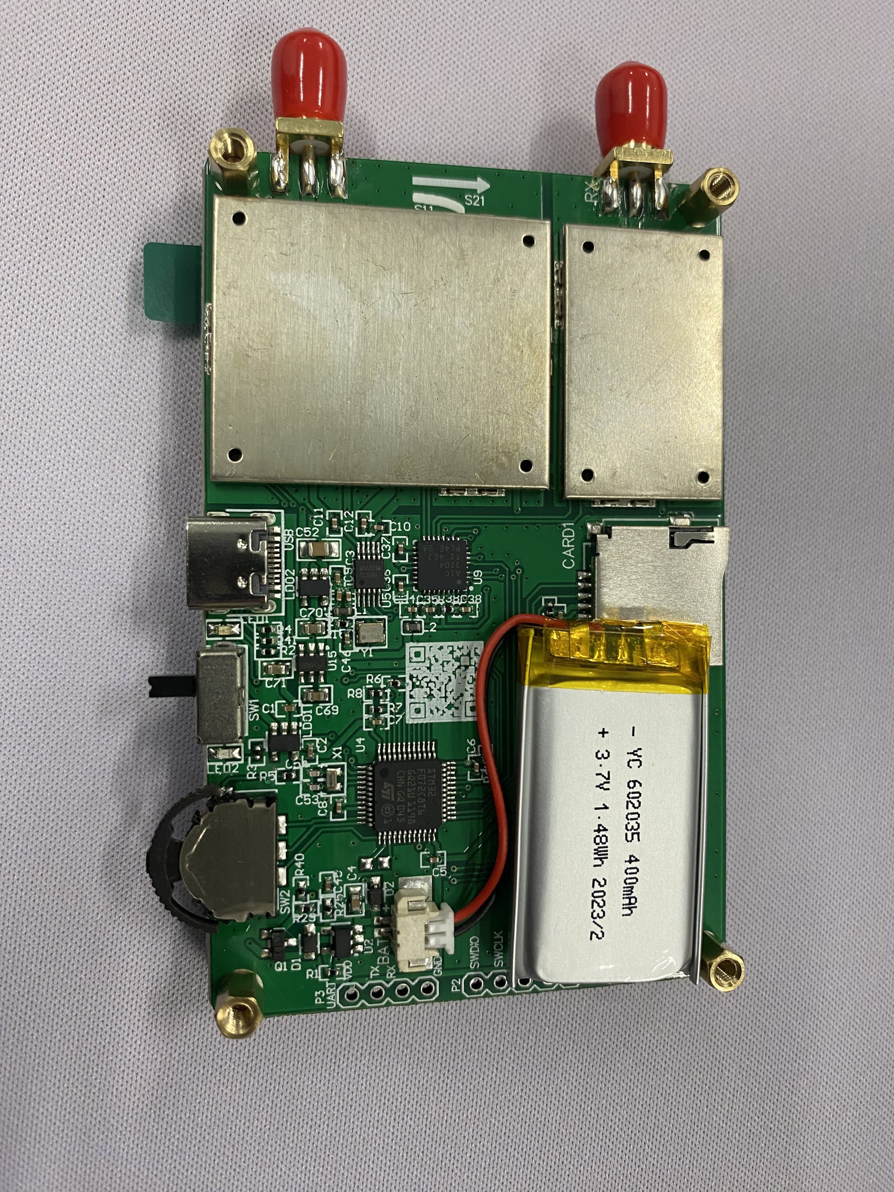 進入眼簾的可以看到有輸入輸出接口,400mA的鋰電池、波動開關,C口的充電接口,下面還有SD卡槽位。