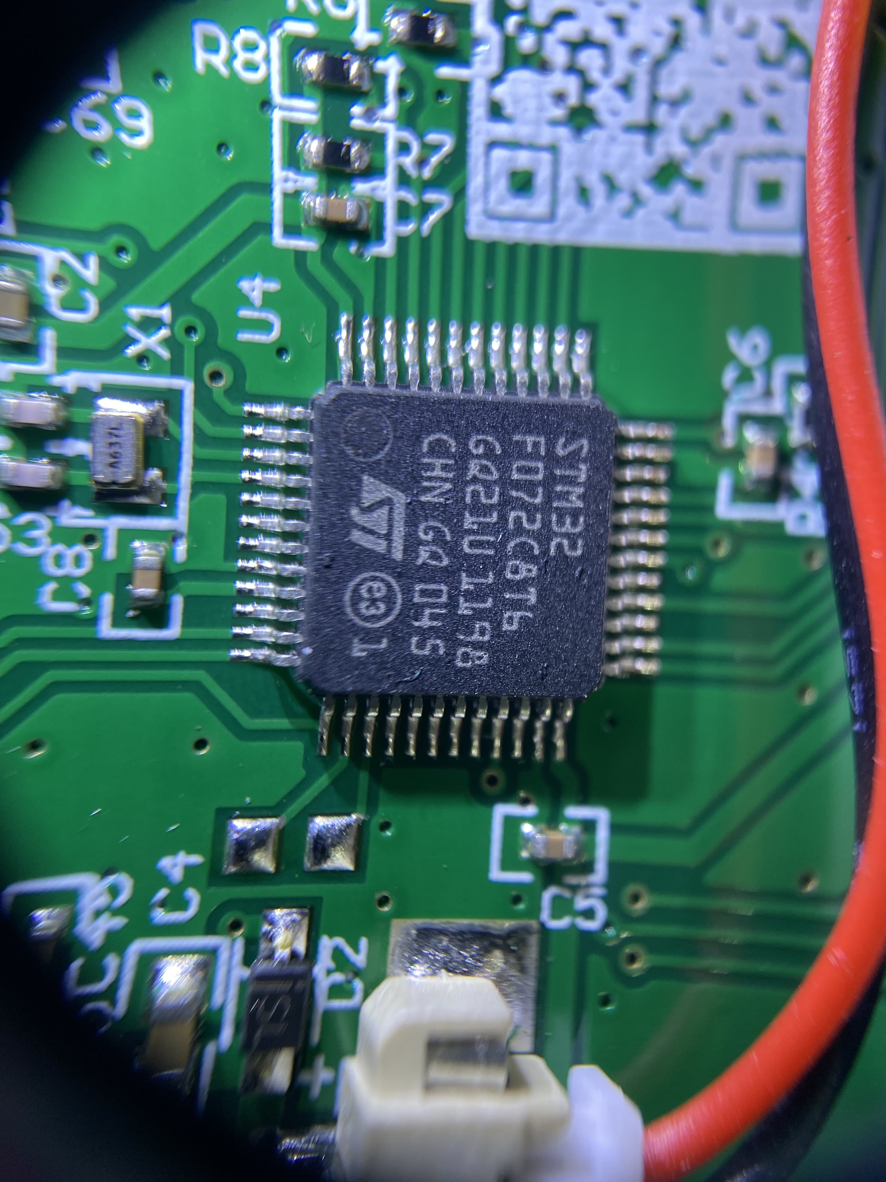 從大到小,我們先看一下主控部分,采用STM32F072C8T6。STM32F072C8T6是STMicroelectronics推出的一款高性能、低功耗的32位微控制器,采用Cortex-M0內核,運行頻率高達48MHz。該芯片內置64KB的Flash存儲器和16KB的SRAM,同時還支持多種外設,包括USB、UART、SPI、I2C等。STM32F072C8T6還具備豐富的安全功能,如硬件加密、校驗和保護等,以保證系統的可靠性和安全性。由于其高性能、低功耗和豐富的外設支持,STM32F072C8T6在工業控制、智能家居、汽車電子等領域有廣泛的應用。