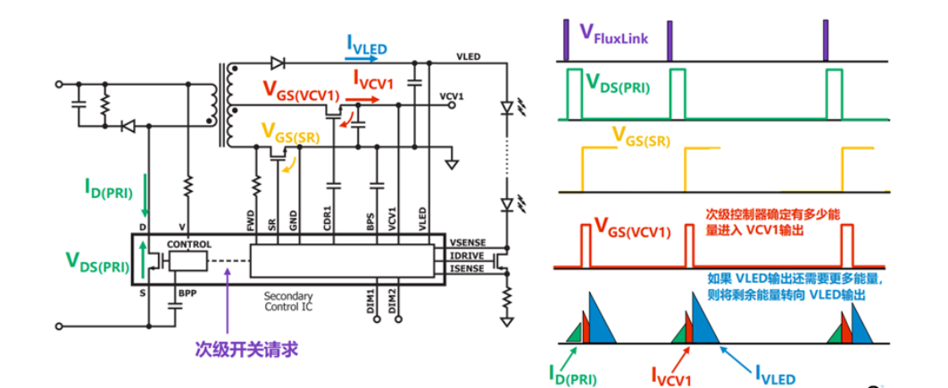 FluxLink 隔離反饋:無需光耦實現 ±3% 輸出穩定度,響應快、壽命長 ;
