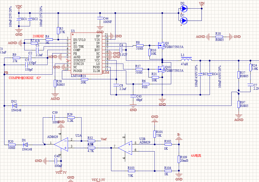 大佬們幫忙看下,我用LM5145做的BUCK,沒加恒壓電流環。整個電路波形沒問題。加了恒壓電流環,mos驅動波形就出問題了,波形很差,震蕩嚴重,請問怎么解決? LM5145這個芯片可以做恒壓和恒流電路嗎?