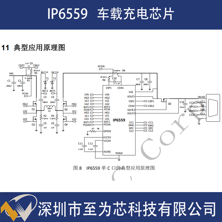 IP6559應用領域眾多:車載充電器支持雙口獨立快充,單口最大輸出100W,雙口同時使用自動分配功率;快充適配器可與筆記本、平板“一線通充”;戶外電源能搭配鋰電池組,滿足野外設備供電需求。