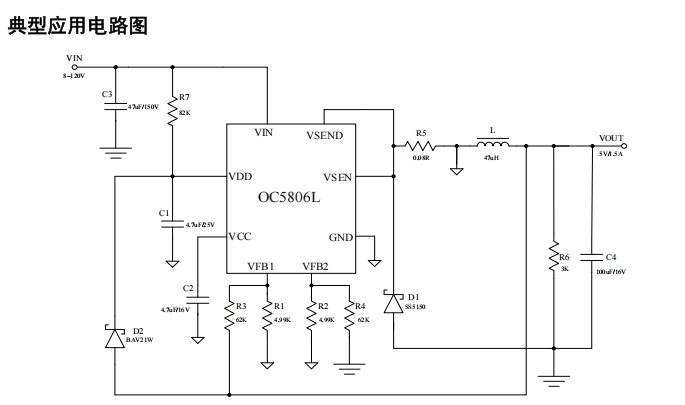 大東微電子代理的歐創芯OC5806L 是一款支持寬電壓輸入的開關降壓型 DC-DC,芯片內置 150V/3A功率 MOS,支持最高輸入電壓 120V。SOP8封裝,可完全替代OC2006.