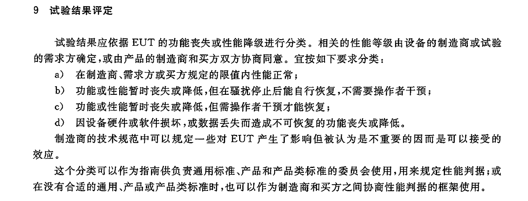 顯然,在產品遭受雷擊時必須要滿足等級A或B,該產品上電不能恢復,重新上電不能恢復,判定為ClassC,不合格。