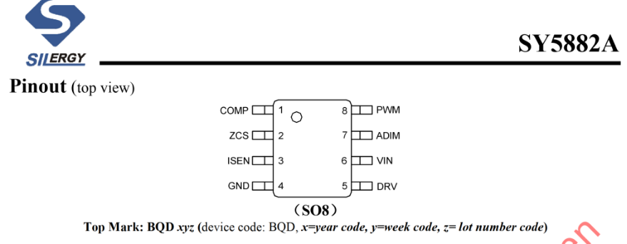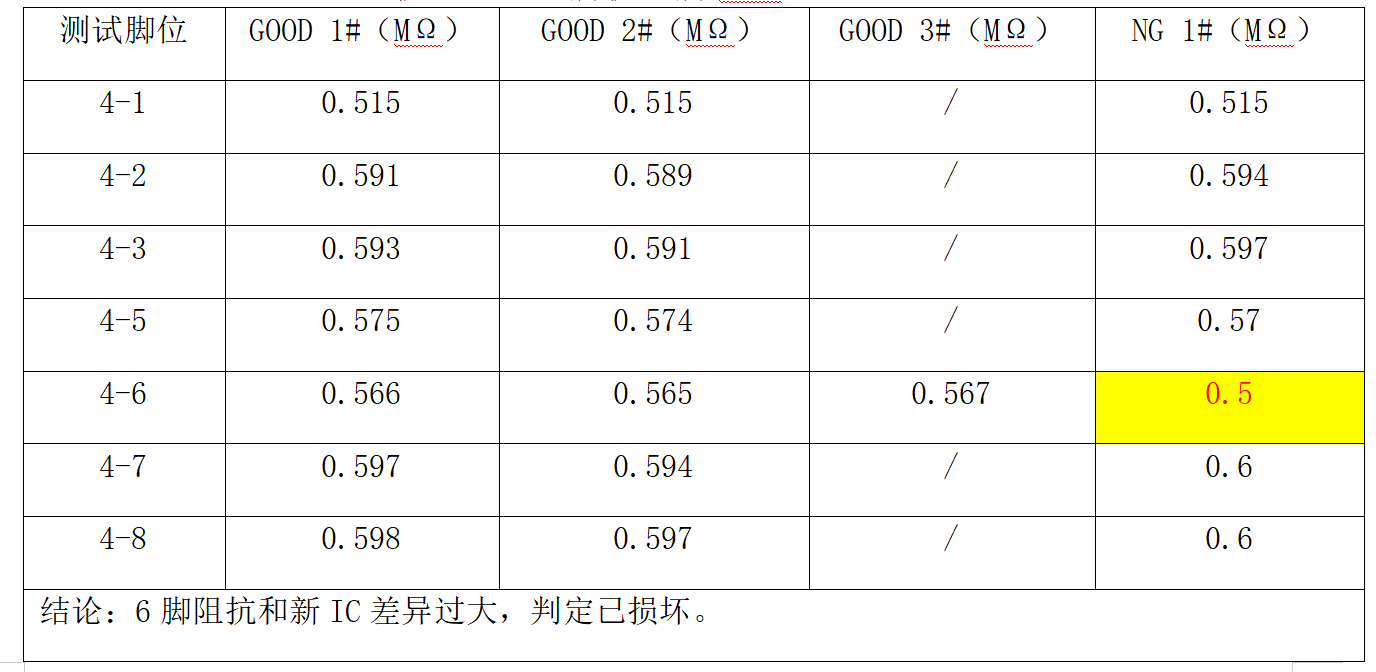對比新舊SY582A對地阻抗發現是差異比較大的NG1#,6腳供電腳Vin損壞。