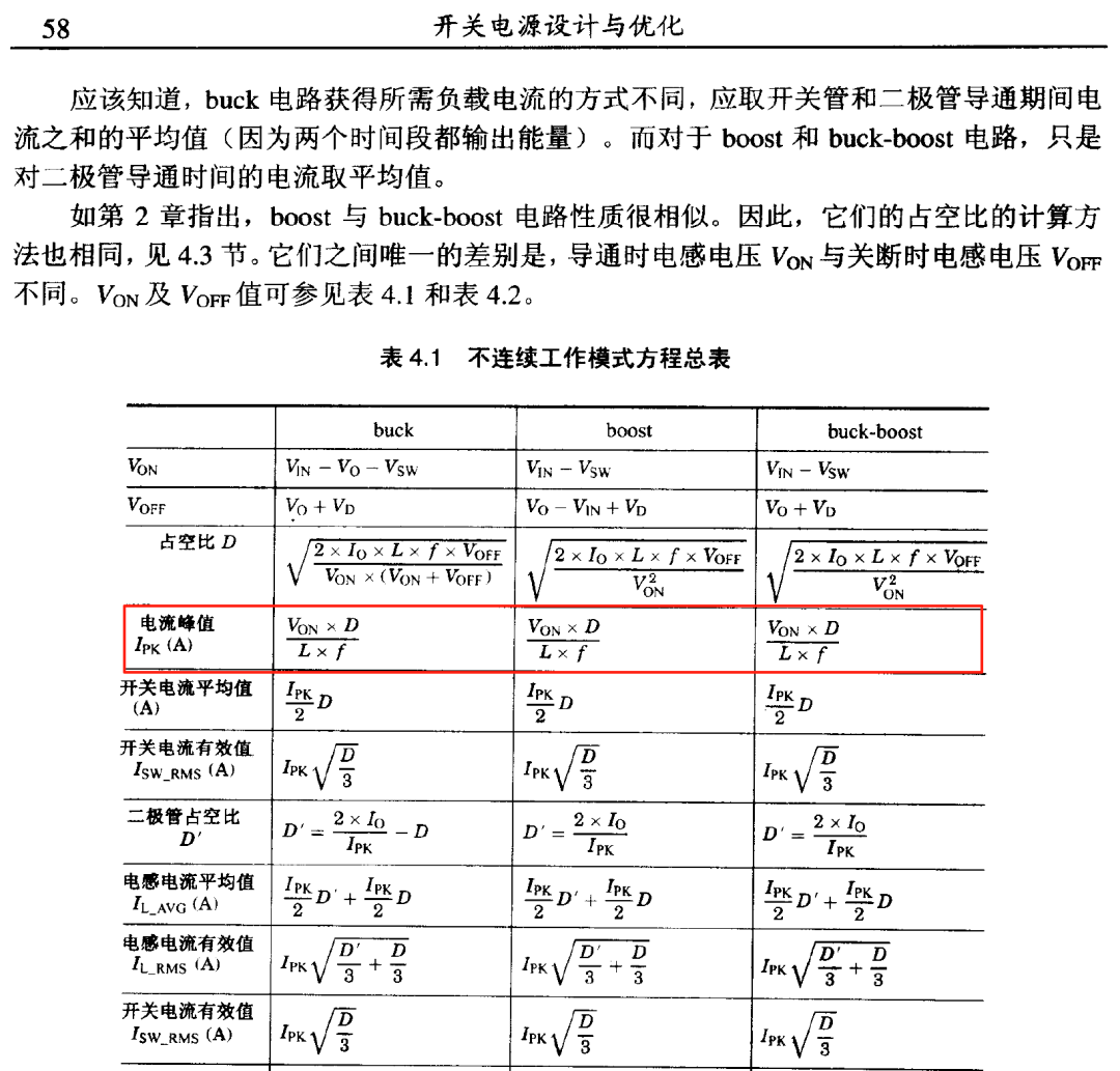 圖 1所示,Sanjaya《開關電源設計與優化》這本書58頁,給出了boost電路dcm模式下的峰值電流公式(0.1):