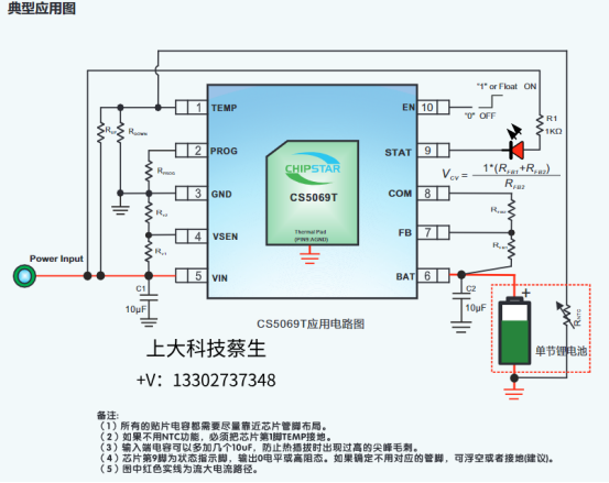 更值得關注的是,CS5069T 內置多重安全防護:輸入過壓 / 欠壓、電源過載、芯片過溫、充電超時保護一應俱全,還能通過自動斷電功能防止電池倒灌電流,延長電池壽命。充電狀態可通過 STAT 管腳直觀判斷,異常情況時 LED 閃爍報警,讓充電全程可控可防。無論是日常手持設備,還是家用小電器,CS5069T 都能提供可靠的充電解決方案!