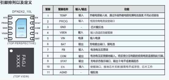 它不僅輸入耐壓達 36V,BAT 管腳更具備 20V 耐壓與防反接功能,有效避免安裝誤操作導致的芯片損壞;最大 1A 充電電流可通過外部電阻靈活調節,搭配 1% 充電電壓精度與 10% 電流準確度,兼顧充電效率與精準控制。FB外置,可以通過外部連接電阻控制浮充電壓,比起內置的更加靈活,適合更多的場景。纖小的 DFN2X2_10L 封裝,完美適配產品小型化需求,-40℃至 85℃的寬溫工作范圍,讓設備在復雜環境下也能穩定運行。