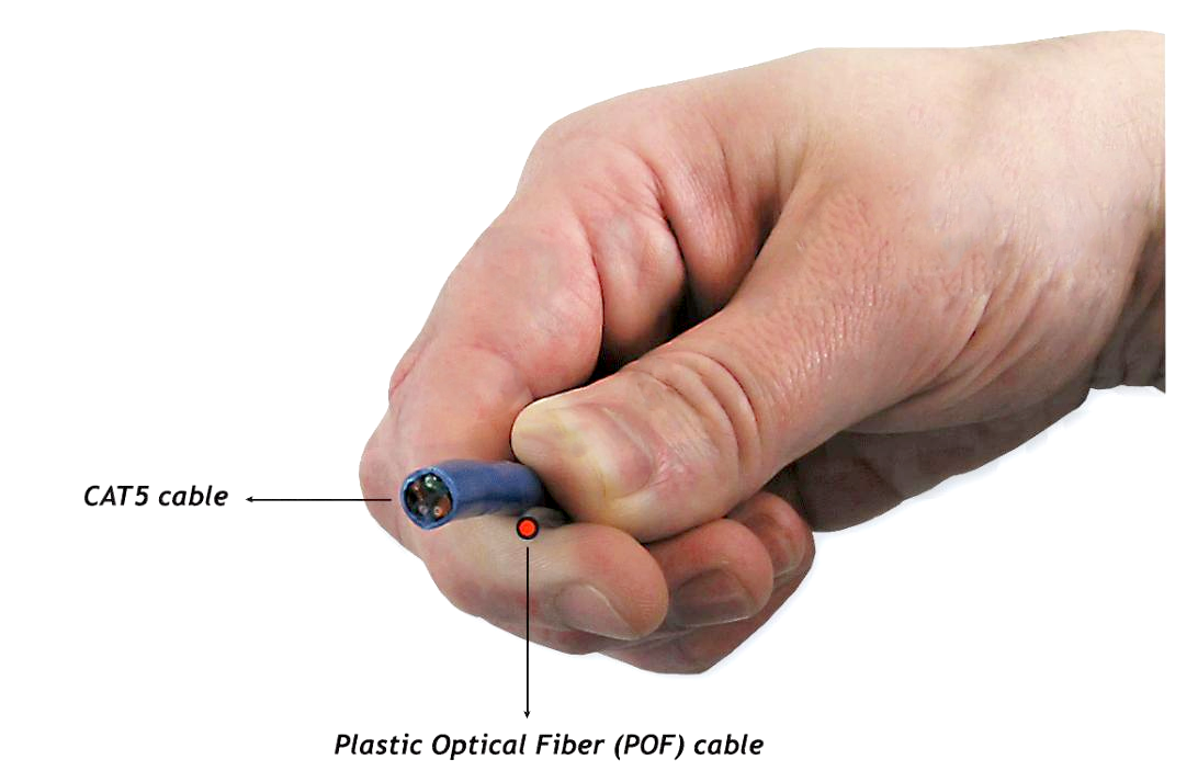 Firecomms提供直徑1.5mm和2.0mm的塑料光纖,如圖2所示,相比雙絞線,其尺寸更小,能在狹窄的空間中布線,靈活性很高。FC-500是Firecomms單卷長度500米、直徑為2.0mm的塑料光纖,兼容 IEC 60793‐2‐40 Class A4a標準,防火等級達UL VW-1級。此型號包含FC-500-0SB型單芯光纖和FC-500-0DB型雙芯光纖兩種型號,以卷軸的形式交付,方便現場安裝或制作光纖束。