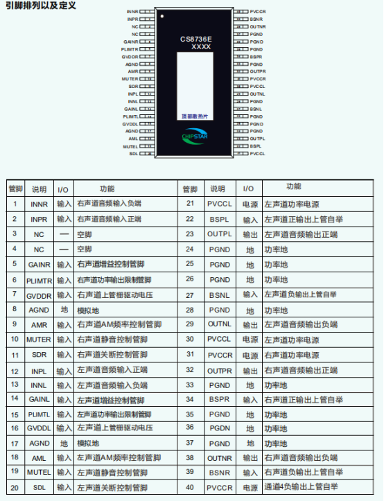 CS8736E 作為 2X150W 立體聲 D 類音頻功率放大器,在硬件設計中具備多重適配優勢,尤其貼合高功率音頻場景需求。其頂層設計散熱焊盤,外接散熱器后可實現 2X150W 以上持續功率輸出,且在適宜電源電壓下能驅動低至 2Ω 負載,搭配 EFB40 封裝,為散熱器件安裝及 PCB 布局提供便利,額定工作溫度范圍覆蓋 - 20℃至 85℃,適配多環境應用。