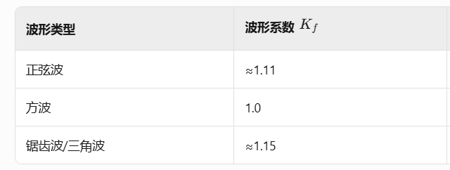 其中r為波形系數 為有效值與平均值的比值,計算時 f 單位為KHz