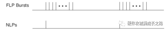 FLP(Fast LinkPulse ),快速link脈沖。FLP中包含Rate和Duplex以及自協商標志位;開啟AutoNegotiation的10BASE-T/100BASE-T會發送FLP,當100BASE-T收到10BASE-T發送的NLP時,它會停止發送FLP并轉而發送NLP。FLP由17個時鐘脈沖和16個位置對應的數據脈沖組合而成: