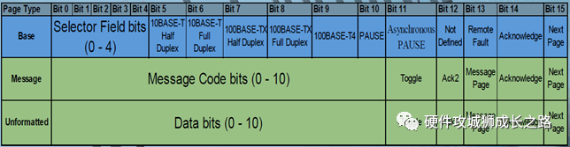 自動協商期間交換的頁面有三種:基本頁、消息頁、無格式頁: