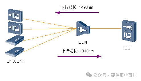 PON(Passive Optical Network)技術是一種基于無源光網絡的寬帶接入技術,它通過純光介質連接局側的光線路終端(OLT)和用戶側的光網絡單元(ONU),整個光分配網絡(ODN)不包含任何有源電子設備,全部由光分路器等無源器件組成。因而被稱為“無源”的光纖網絡技術。