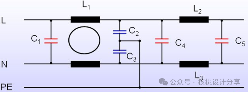 (1)電源端口處(如220V)增加π型濾波器,從傳導路徑上阻斷差模干擾。