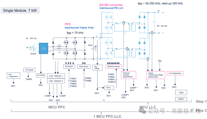 上圖顯示,在OBC中,MCU在控制PFC和LLC部分方面的作用很突出。在這兩個部分中,必須在轉換器的輸入或輸出端處理800V的電壓。