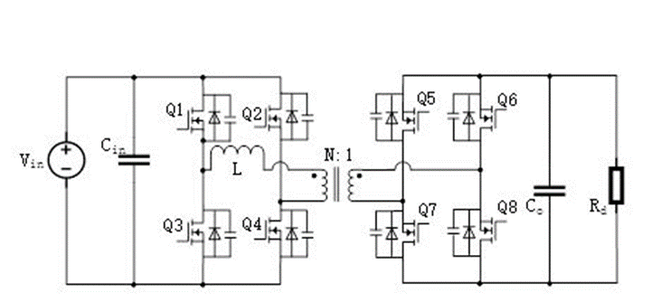 缺點是由于變壓器漏感的存在,副邊會出現占空比丟失現象,副邊二極管容易出現電壓尖峰;另外該拓撲的輸出需要的LC濾波器會造成電路體積增大,同時會導致損耗增加。雙有源橋電路:通過原副邊移相來控制能量的流動方向和大小,可以實現零電壓開通,經常應用于大功率場合的雙向DC/DC變換器,該拓撲電路功率密度高、效率高、能雙向傳輸功率,被廣泛應用于電動汽車、航天航空等領域。