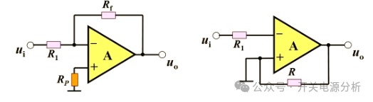 首先我們要先在電路中找到連接輸出端和輸入端的元器件,通常是電阻或者電容,這類電阻我們稱為反饋電阻,一般工程師為了方便生產維修時方便查找,就會在圖中用Rf來表示反饋電阻,所以找到Rf基本就是反饋線路了;如果沒有Rf電阻,那么我們可以尋找那些不屬于輸出回路和輸入回路,但是橫跨在輸出和輸出之間的元器件,這些元器件所在的通路就是反饋線路;下圖為有反饋和無反饋的線路:
