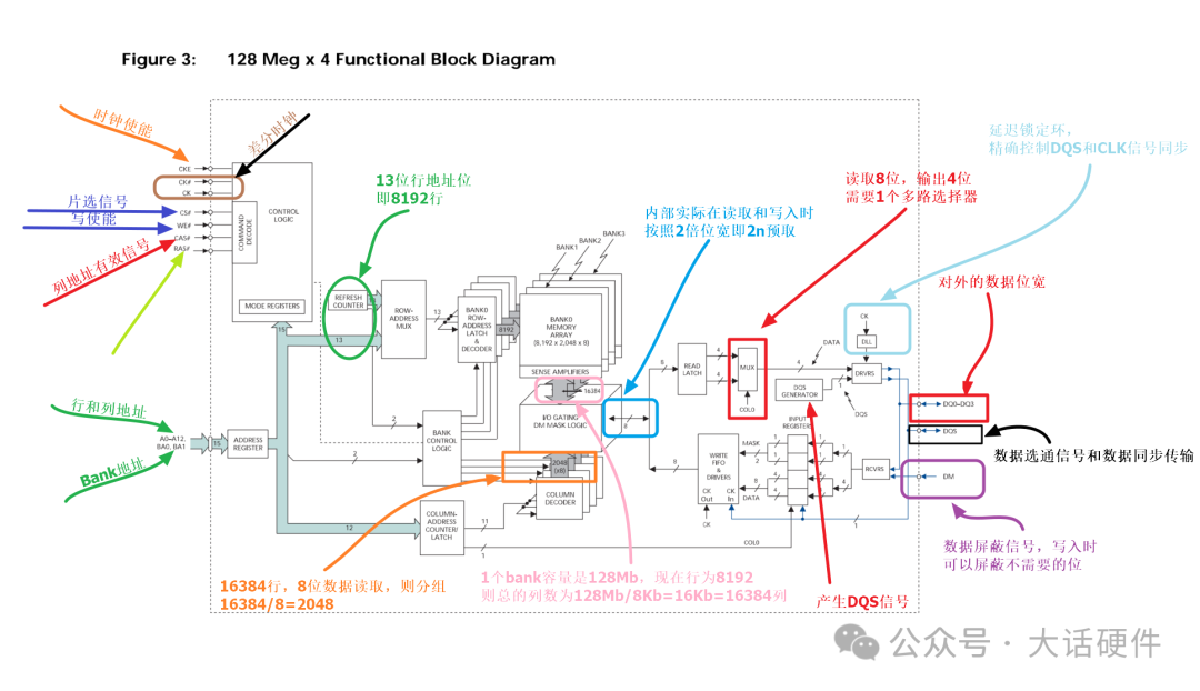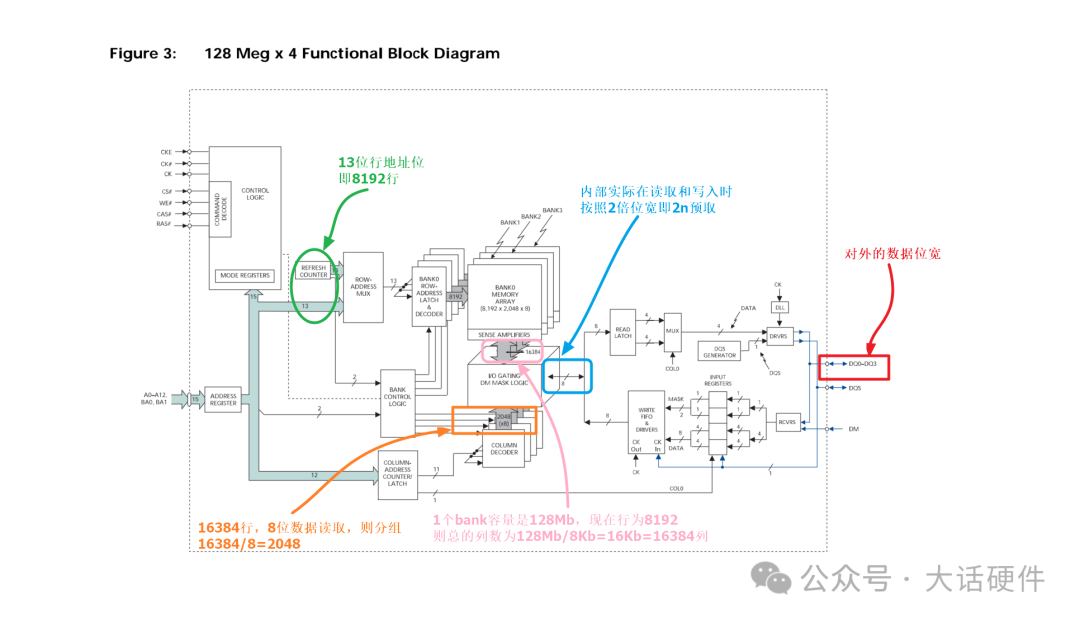 結合bank容量,計算列的數量為32Mb/8Kb=4Kbx4=16384列。