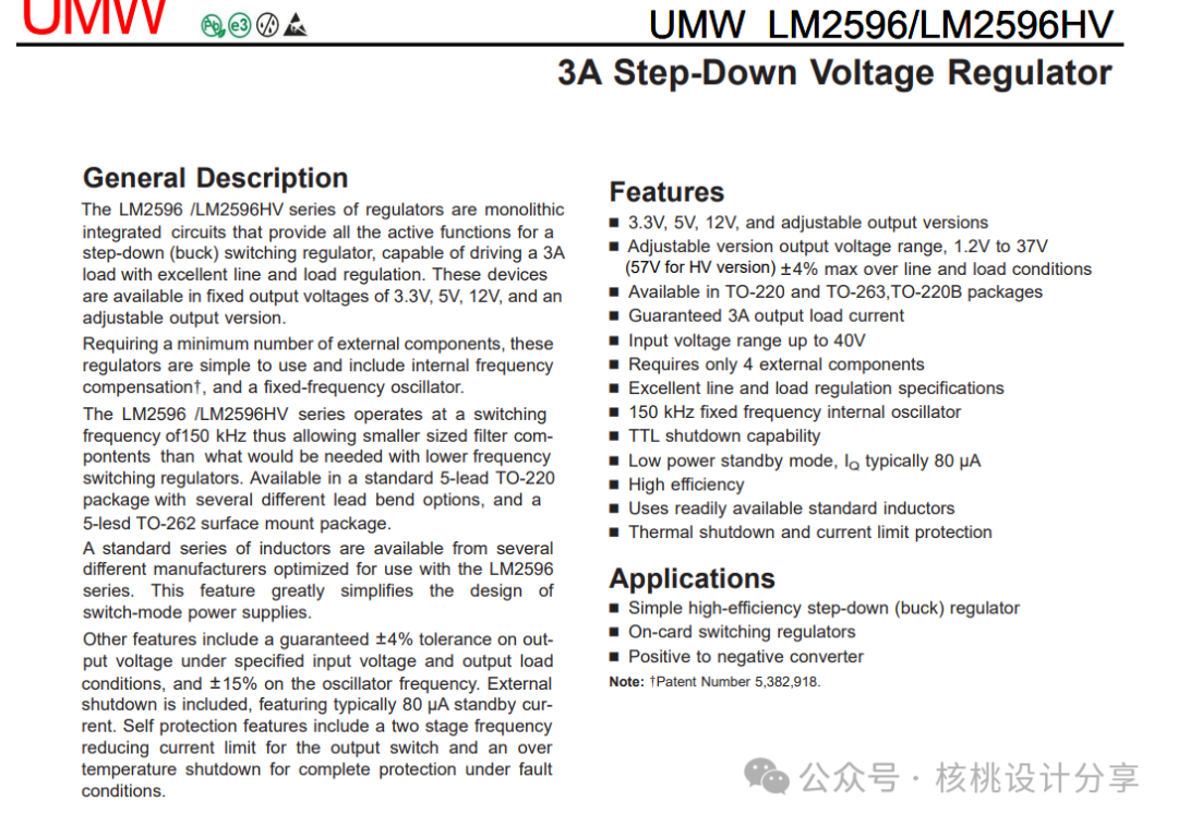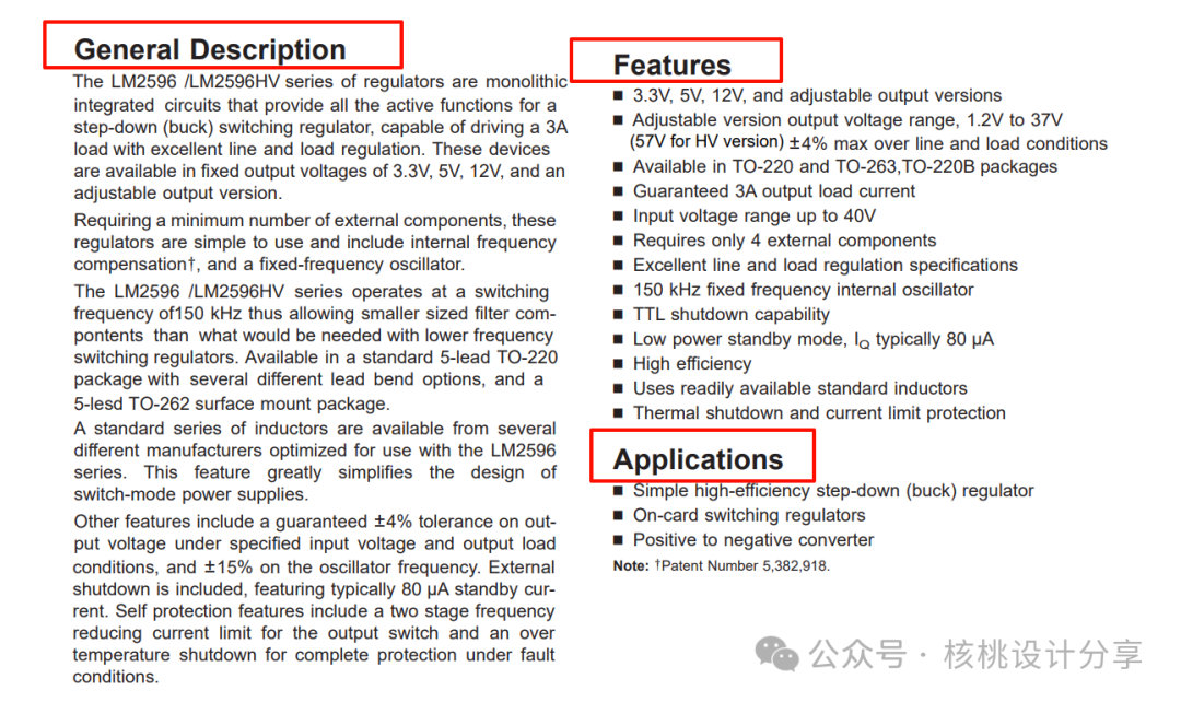 英文不好的小伙伴其實也不用太過于擔心,現在很多翻譯軟件翻譯的準確度還是可以的,完全可以借助軟件來看datasheet,這里就不展開講了。我們先來看一下幾個芯片手冊的首頁,如下圖所示:①LM2596S