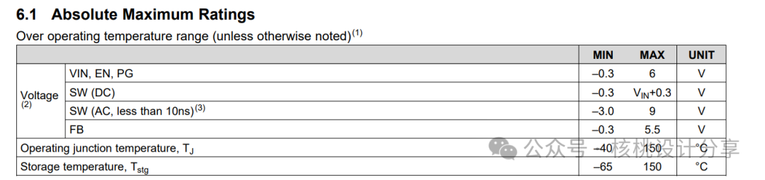 (5)Absolute MaximumRatings(絕對電氣特性)Absolute MaximumRatings(絕對電氣特性)重點介紹芯片的極限工作條件,在使用過程中,一旦超過這個極限條件,芯片損壞的概率會非常大,所以也是重中之重,要認真看完。