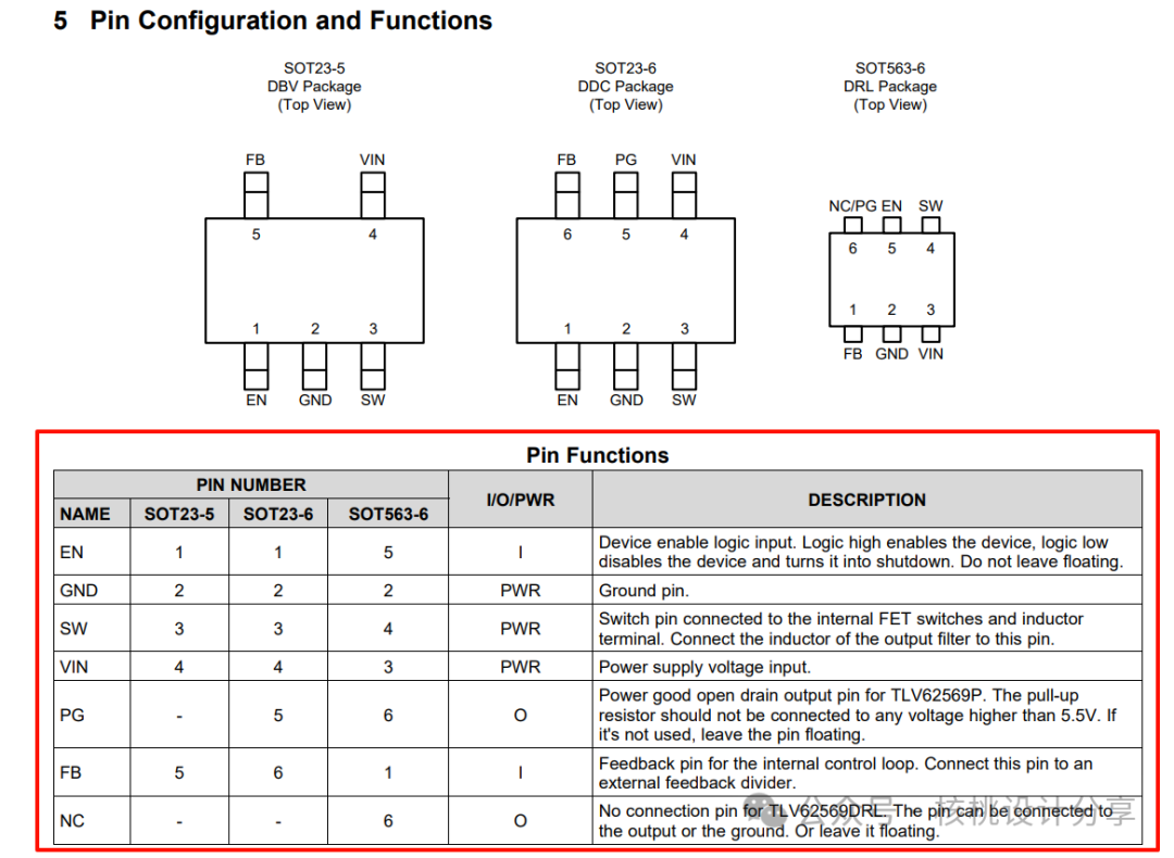 (4)Pin Configuration and Functions(管腳定義和功能)顧名思義,就是芯片管腳的定義和功能解析,非常重要,一定不能忽略,要認真研讀。不然設計原理圖時很容易踩坑。