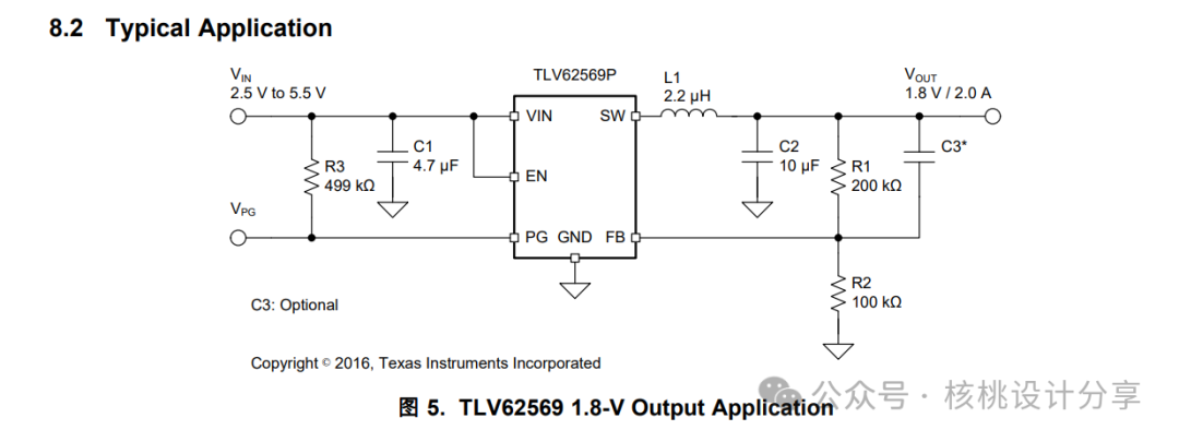 (7)Typical Applications(典型應用)一般芯片廠家都會在datasheet中給出典型應用圖,根據典型應用圖設計出來的電路圖一般不會有問題,很多芯片都是在首頁就已經給出,不過一般都是在手冊中間位置。