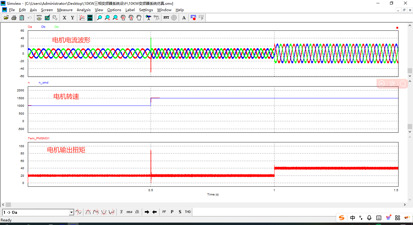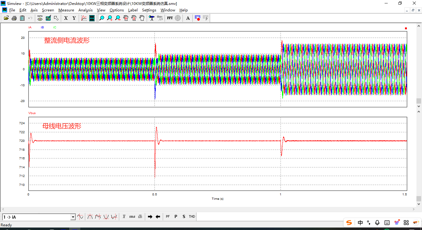 上面已經單獨實現了AFE整流閉環控制、兩電平電壓源逆變FOC雙閉環控制,只要要將AFE整流閉控制系統的高壓輸出接到兩電平電壓源逆變FOC雙閉環控制系統直流輸入,即可實現10KW變頻器的系統仿真。